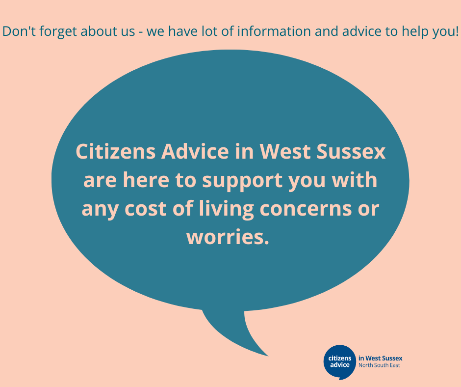 Citizens Advice in West Sussex are here to support you. With the cost of living affecting many people, we want to provide as much support and information to our residents as possible.