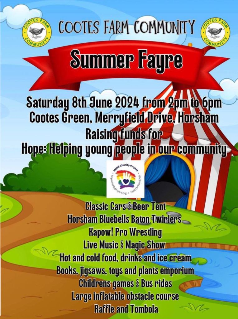 Cootes Farm Communicty Fayre Image June 4, 2024rhodahatton Share this: Click to share on X (Opens in new window) X Click to share on Facebook (Opens in new window) Facebook Click to email a link to a friend (Opens in new window) Email Click to print (Opens in new window) Print Like Loading...